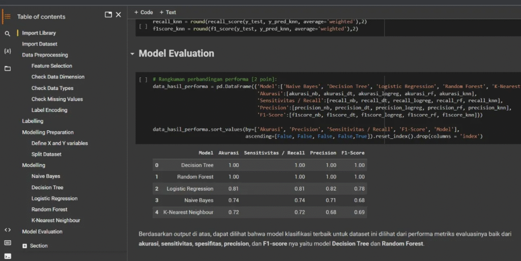 Mengolah data dengan beberapa metode seperti pre-processing, future selection, klasifikasi menggunakan 2 bahasa yaitu Python dan R